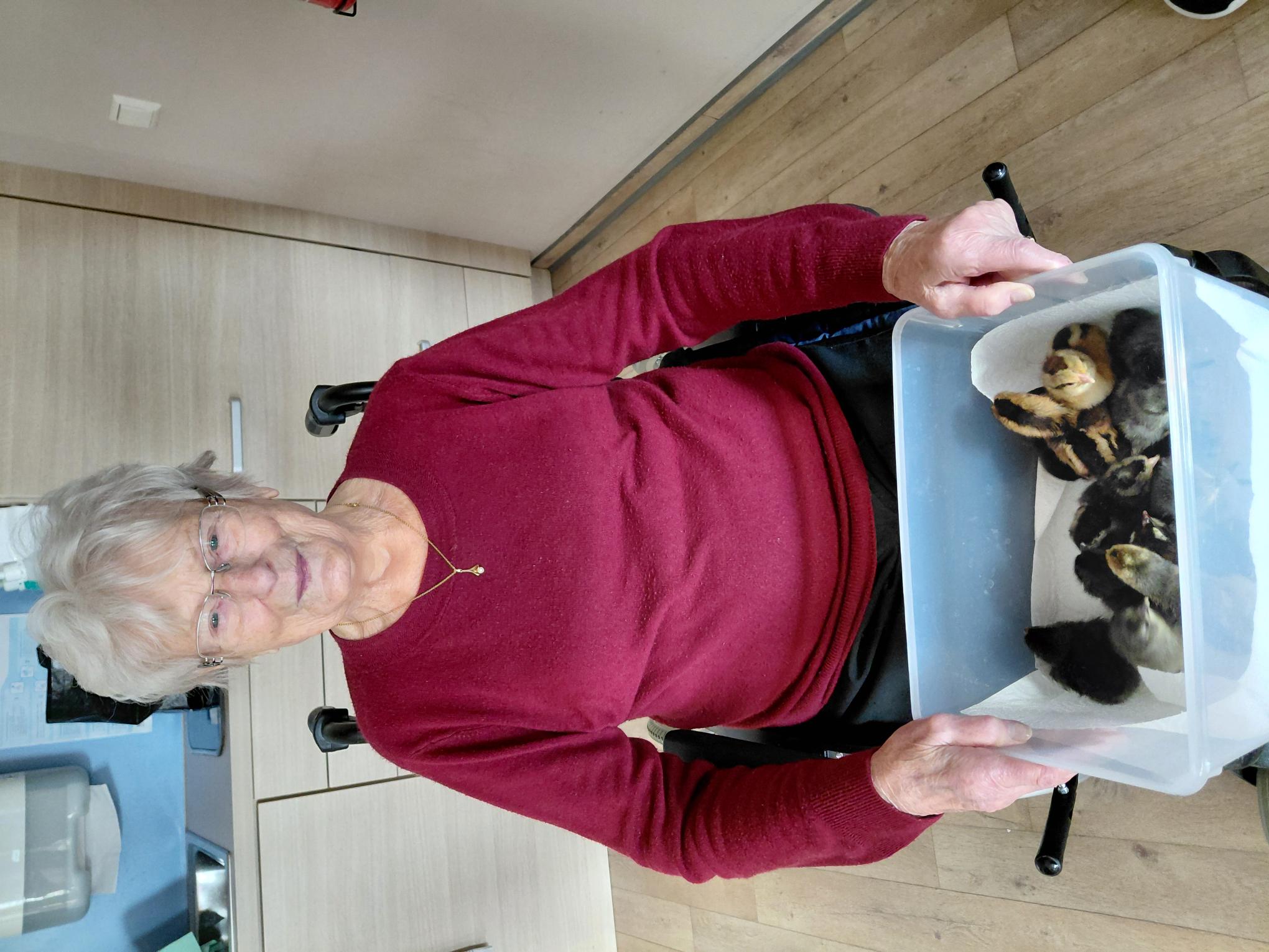 Gerade für Seniorinnen und Senioren steckt in diesem Projekt weit mehr als nur ein schöner Moment. Die Begegnung mit den Tieren kann Erinnerungen an frühere Lebensphasen wecken: an Kindheitstage auf dem Land, an das Versorgen von Tieren oder an vertraute Geräusche und Gerüche aus vergangenen Zeiten. So entstehen Gespräche, gemeinsames Staunen und oft auch ein herzliches Lächeln. Die Küken regen die Sinne an, fördern Kommunikation und schaffen Nähe zwischen Bewohnenden und Mitarbeitenden.
